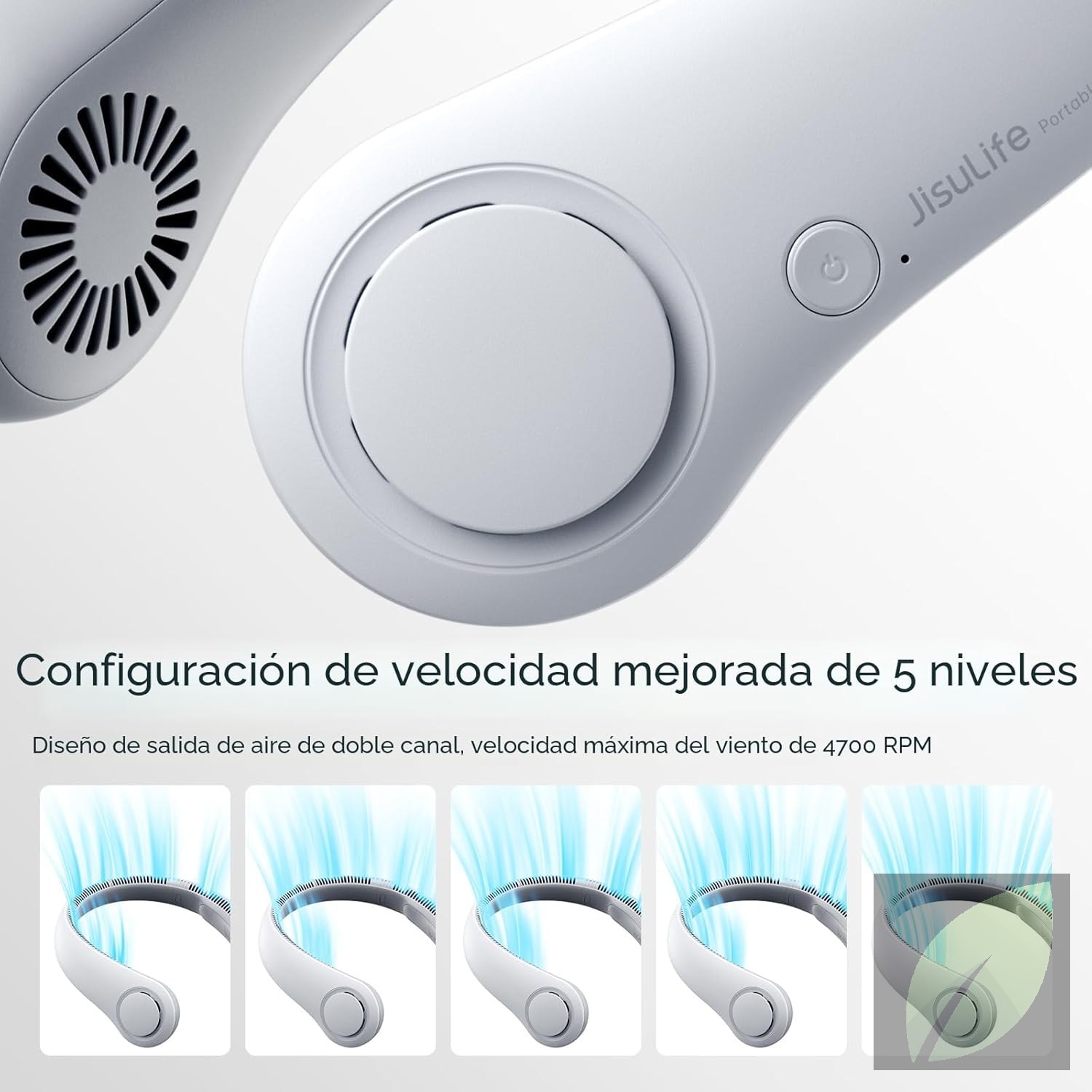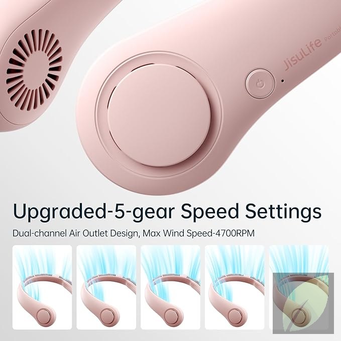 Ventilador de cuello portátil sin aspas, diseño manos libres para una ventilación cómoda y segura. Ideal para actividades al aire libre, viajes o uso diario.